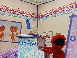 The Drawing Song | A blue crayon writes "DRAW" on the side of the piano, and while Elmo sings "The Drawing Song," the blue crayon bounces in similar fashion to a "bouncing ball." |