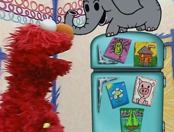 Elmo's Question | Elmo asks the viewer to help him count the five CGI drawings that can fit on a refrigerator. Afterwards, a drawing of an elephant smashes the refrigerator down to the ground! |