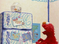 - The easel in Dorothy's fishbowl is seen before Elmo announces what he's thinking about today.