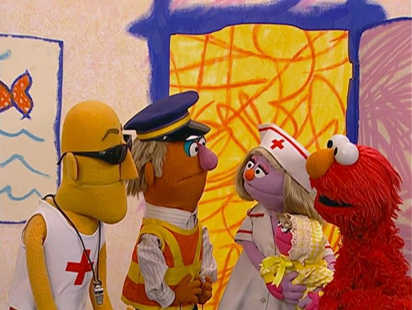 Interview | Elmo wants to talk to professional helpers. He tries to get Super Grover's assistance, but while he ponders how he can do this, Elmo talks to a nurse, a lifeguard, and a crossing guard. |