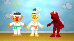 Guess what Elmo's wondering about today? | Elmo imagines Ernie and Bert doing karate. |