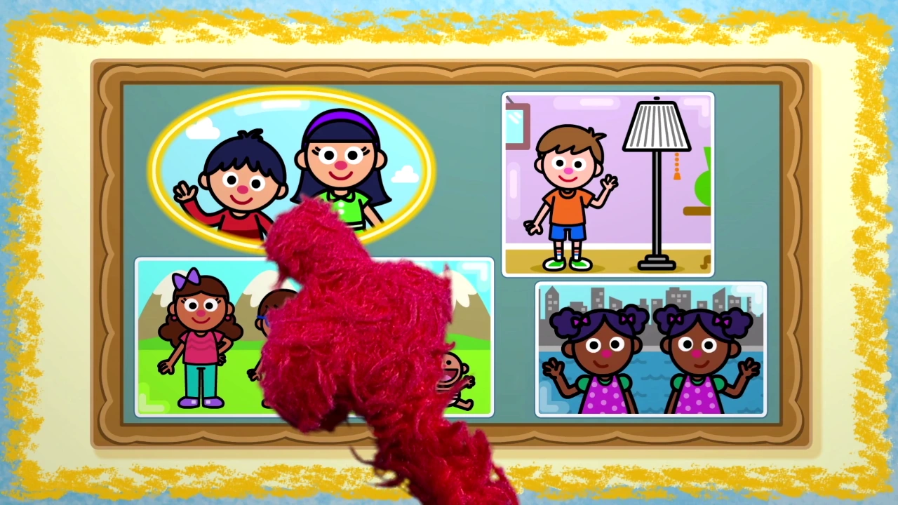 Guess what Elmo's wondering about today? | Elmo imagines a set of siblings. |