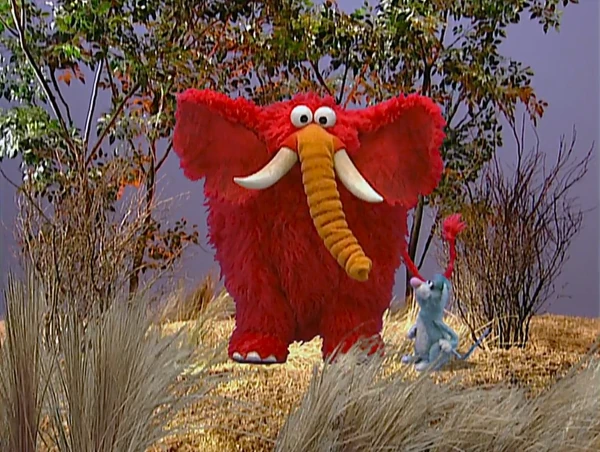 Tickle Me Land | Dorothy imagines Elmo as a beaver who gnaws on a log that had been previously chewed on ("Leave it to beavers!"), a shark with rows of sharp teeth ("With all these teeth, Elmo Shark is gonna get a lot of quarters from the Tooth Fairy!"), and an elephant who uses his tusks to dig for water, which sends a mouse airborne when a geyser spurts out. |