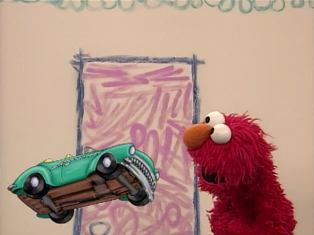 Elmo's Question | Elmo counts the wheels on an animated car - there are four, but the steering wheel makes five. The car pulls away doing a wheelie. |
