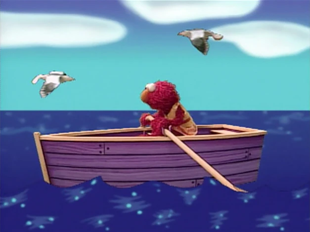 Tickle Me Land | Dorothy imagines Elmo piloting a plane (underscored in the broadcast version with "Linus and Lucy"; replaced on DVD with an instrumental version of the "Sesame Street Theme"), as an engineer driving a train full of Elmos (underscored with "Chattanooga Choo-Choo"; also replaced on DVD), and Elmo rowing a boat and singing "Row, Row, Row Your Boat." |