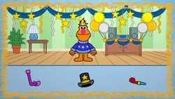Game | Elmo and Cookie have to find the right things for a monster to celebrate New Year's Eve. Cookie suggests a snorkel, which isn't right. But a hat and noisemaker are. |