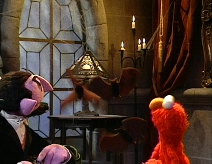 FRAME 6 cont'd | The Count's bats (Linz and Carmen Osbahr) get their turn to tell a joke, which is a baseball bat pun. Elmo thinks they tell great jokes, and the Count adds they sing great as well... |