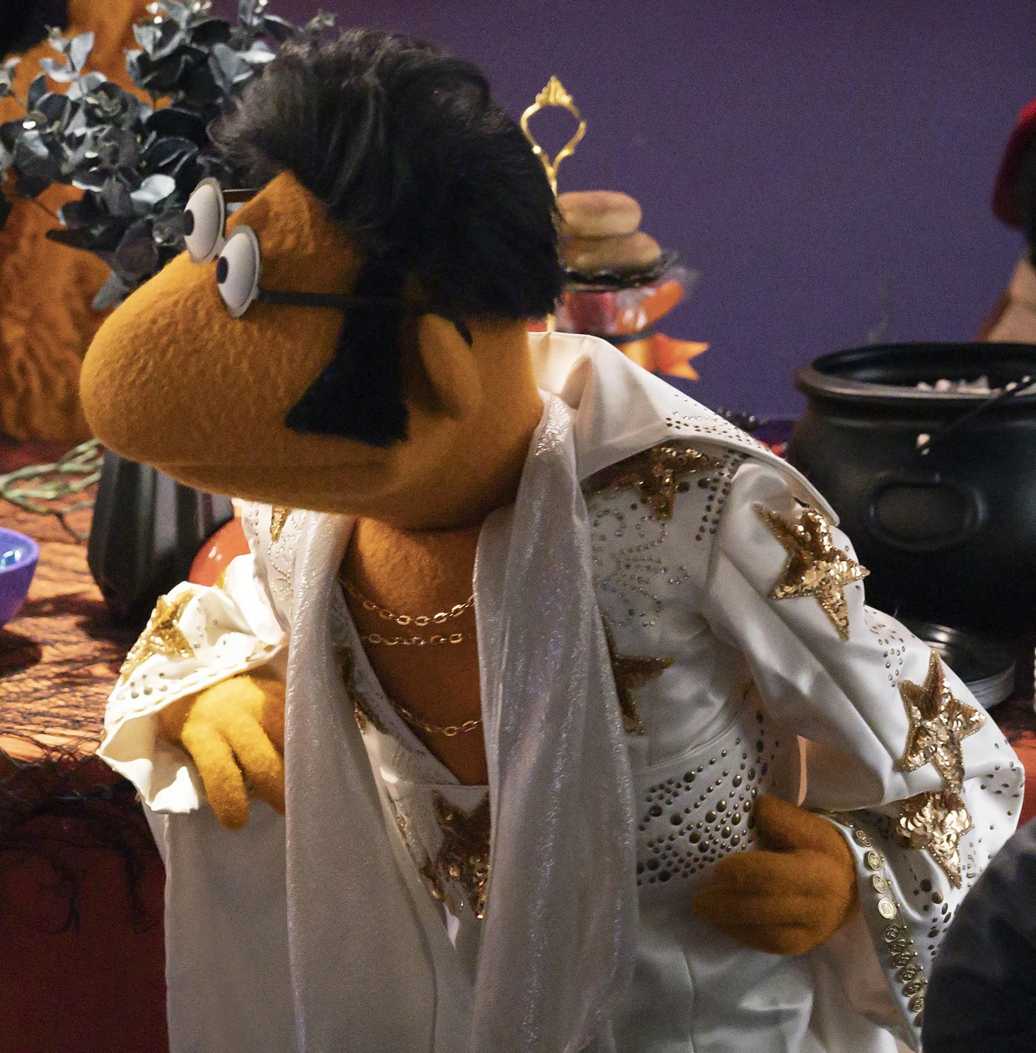 - Scooter dresses as Elvis for Halloween in Muppets Haunted Mansion.