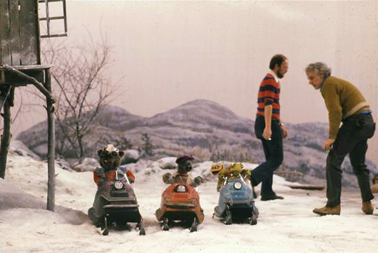 “Emmet Otter was the first time we had gotten into those kind of elaborate sets where we had floors in the interiors and we would take a wide-angle shot with characters coming up through holes in the floor. Or we'd cut into the set and remove the floor and have the characters moving through space in waist shots. That was the most elaborate production we had gotten into at that point. Frog Prince had been platformed-up and The Muppet Show was always platformed-up, but in Emmet Otter... we'd go right into a scene. We'd have the whole set in three dimensions... rigged so we could pop parts and come out through the openings, which is really time consuming...[5]”