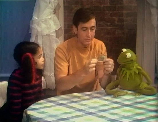 SCENE 9 | Kermit joins Gordon and Sally as they watch Bob fold a dollar bill into a letter W. Gordon then asks Kermit to do his famous W lecture. As Kermit leaves to get ready, the others pass the time by watching the next segment... |