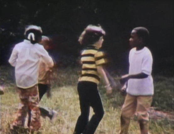 Big Bird tries to play jump-rope with the kids as the credits roll. This scene, originally from Episode 0010, was shown after Mr. Hooper announces the letter and number sponsors. Afterwards, no CTW mentions are shown. |