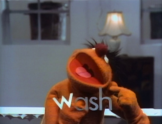 Song | Ernie and Bert: Ernie in the Bathtub Part 2 — Drying off from his bath, Ernie leads the viewer in a rendition of "Everybody Wash" with brief camera cuts to the cast. |