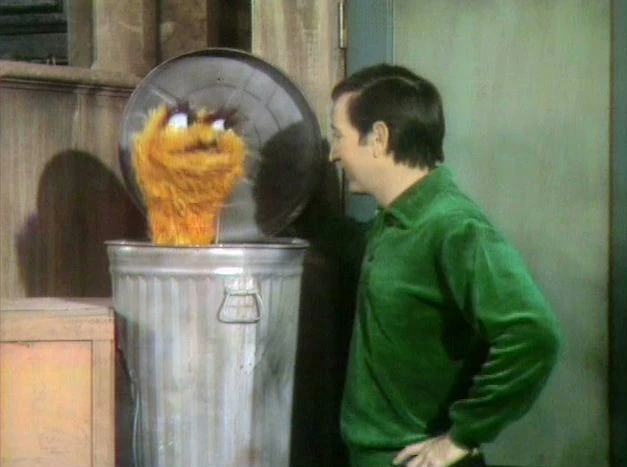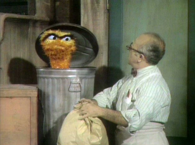 SCENE 3 | Mr. Hooper is the third one to bother Oscar when he throws some trash in his can. Oscar decides once and for all to leave Sesame Street and wonders out loud if anyone's listening. |