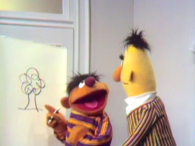 Muppets | Ernie and Bert: Ernie Tries to Draw a 3 Part 2 — Ernie's attempt at a 3 prompts Bert to call his attention back to the film. |