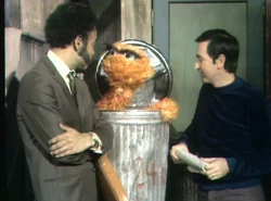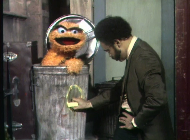 SCENE 2 | Oscar complains to Gordon that his trash can looks the same as the others. Gordon draws an O on it with chalk. |