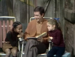 SCENE 3 | Bob reads a book to two girls: Maybe a Monster by Martha Alexander. |
