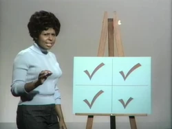Cartoon | "The D Commercial:" Two boys notice a D, saying it looks fat. A resonant voice (Gary Owens) informs them that it's the letter D. This leads to a jazzy story about a dog who digs for dice, wins a duck, and buys a dinosaur with a dime. Moral: "If you dig a dinosaur, drop your duck for a dime." Studio: Ken Snyder; Director: Fred Calvert (First: Episode 0016) |