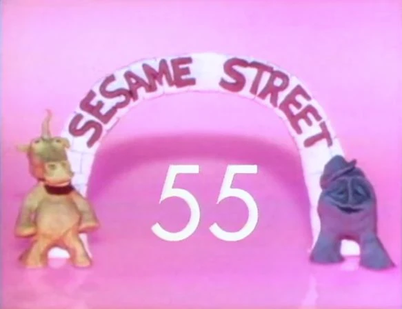 CLOSING SIGNS | Bert and Ernie hold the Sesame Street sign, and Gordon and Susan hold the Children's Television Workshop sign. |