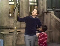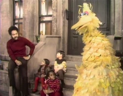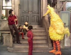 SCENE 2 | Gordon wants to make sure Big Bird knows the difference between "up" and "down." Troy and Mauricio help by pointing in those directions, Big Bird recalls going up and down the steps of 123 Sesame Street, and Robin shows up and down by playing jump rope. Big Bird thinks of something else that can go up and down: a rocket. |