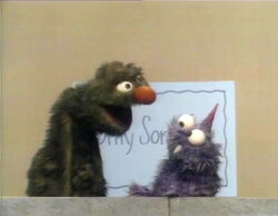 Muppets / Cast | It's Silly Song Time! A pair of Muppet monsters (Proto-Grover and Billy) sing a song about "Up and Down." After the first verse, we fade to a sequence of Buddy looking up for something he dropped — a balloon. After the second verse, we fade to a scene of Ernie pouring milk into a glass while hanging upside down, despite Bert's warning. |