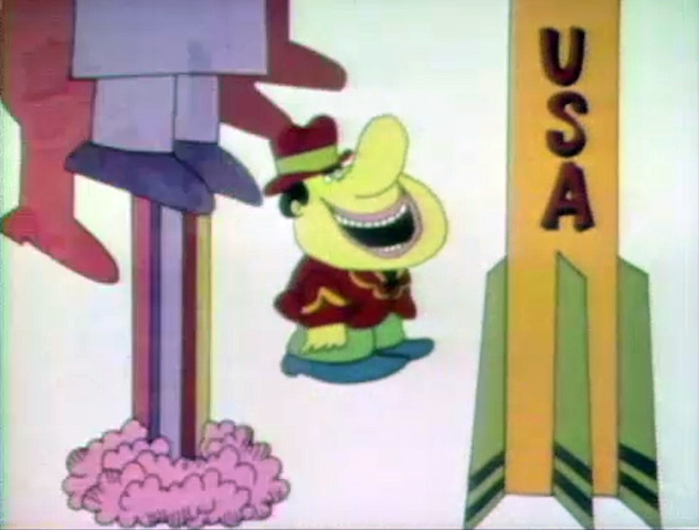 Cartoon | A Gary Owens-voiced man attempts to discuss the letter I, but is jeered by an offscreen voice. The man uses him as an example of the word "impolite". (First: Episode 0032) |