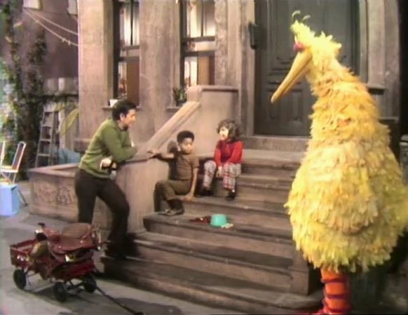 SCENE 5 | Gordon asks Big Bird how he can get from the yard to the steps of 123 Sesame Street. Big Bird demonstrates by walking, but learns from Gillian and Rhonda that one can also run, skip, and hop from one place to another. Big Bird decides to go back home by trying all three, and promptly crashes. Gordon doesn't think he's the only one having trouble getting around, and narrates the following film... |