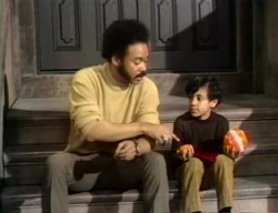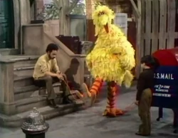 SCENE 1 | Gordon greets the viewer, and talks with Marlon and Big Bird about "over," "under," "around," and "through." Big Bird is a little rusty, so Gordon shows him over and under with a jumprope, then he and Marlon have Big Bird walk around them, and through the construction doors, crashing in the process. |