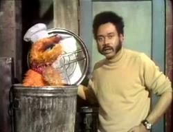 SCENE 6 | Gordon hears a train coming from Oscar's trash can. Oscar, dressed in an engineer's cap and bandana, explains he's set one up to transport him from room to room. ("How do you expect me to get from room to room - walk?") |