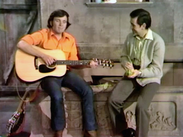 SCENE 2 | Don sits on the steps with Bob, Susan, and the kids as Gordon explains the confusion caused earlier in communicating their musician friend's arrival. Don uses it as an opportunity to demonstrate how people correspond with one another through song; he plays the guitar and sings "What Is Your Language," "Compre Una Casa," and "Communication Song." |