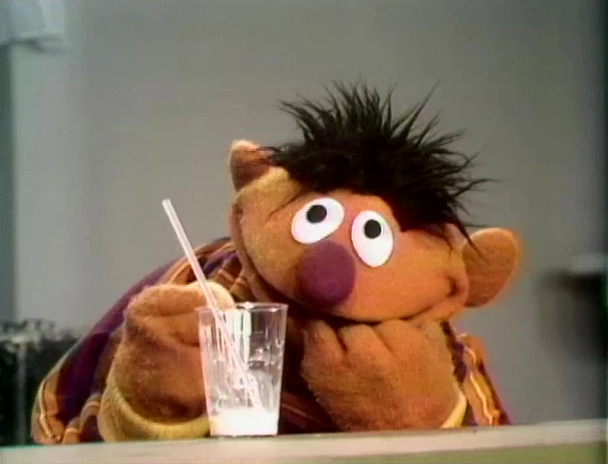 Muppets | Cookie Monster and Ernie: Milk and Cookie — Ernie hides to observe Cookie Monster stealing his milk and cookies. (First: Episode 0011) |