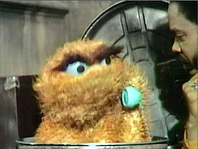SCENE 7 | Gordon encounters Oscar, who is down in the dumps because he can't think of anything to complain about. Gordon suggests the weather, but then Oscar remembers that he can call "Dial-a-Grouch", the number for which is 987-654-321. He accidentally dials 123-456-789, and ends up arguing with an eccentric character, who turns out to be another Grouch named Melvin Meanie. Oscar invites him to an upcoming meeting of The Disagreeable Order of Grouches. |
