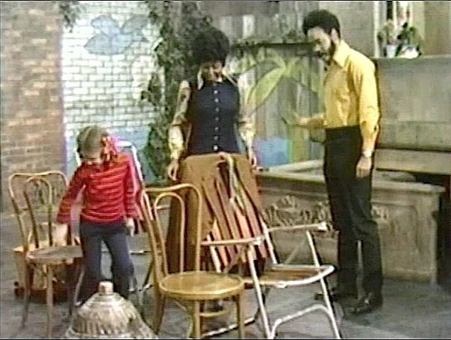 SCENE 1 | Susan passes some kids playing checkers, then greets the viewer. She and Gordon observe how beautiful a day it is to go driving, but Susan points out that they don't have a car. Thus, Gordon tells the kids to set up some chairs so they can all pretend they're going for a drive. Susan goes upstairs to pack a picnic lunch and change out of her work uniform, and Gordon says they'll be ready before you can count to 10 ... |