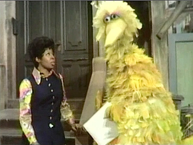 SCENE 6 | Big Bird approaches Susan to show her some sequential pictures he drew, so she can put them in the correct order. |