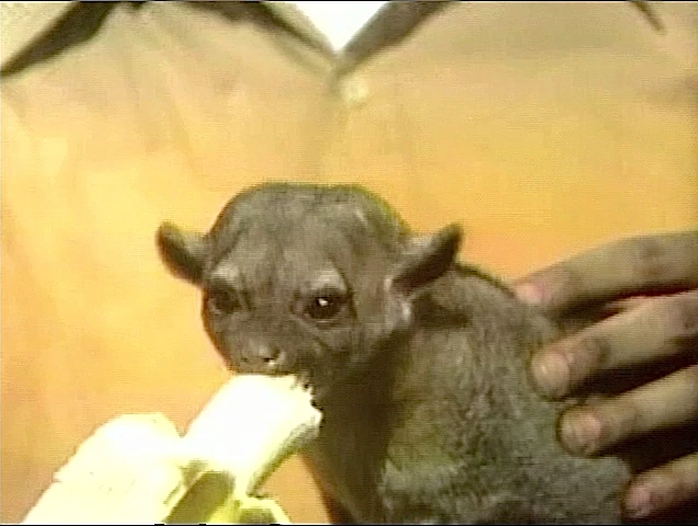 SCENE 5 | In today's first animal segment, Gordon displays a South American kinkajou (also known as a "honey bear"). Francesca and Rico take turns feeding a banana to the hungry kinkajou. |