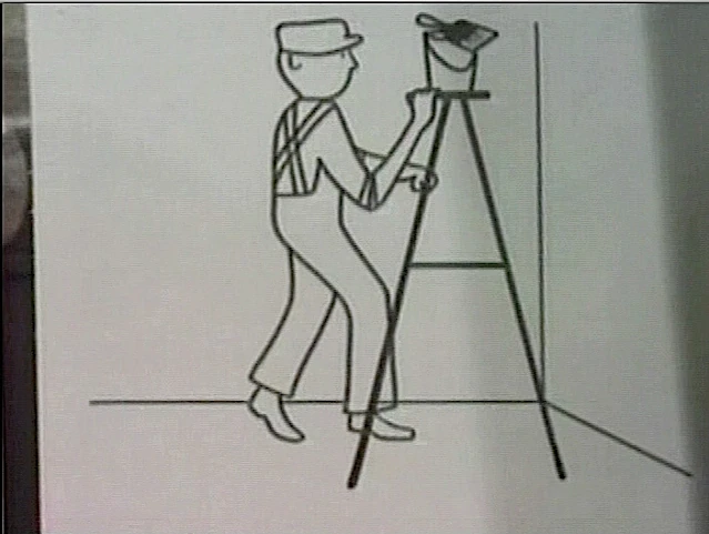 The first set of pictures displays a man with a paint brush, a paint bucket and a ladder. |