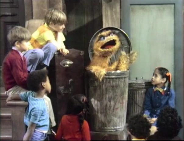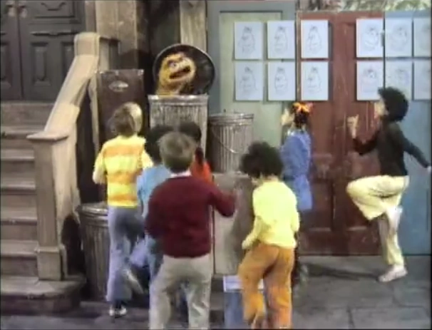 | SCENE 2 | Oscar calls the kids over. The kids gather near his can, but Oscar tells them they're too near. Oscar sends the kids far back, but they move too far. The kids continue going back and forth until Oscar demands to know if they understand the difference between near and far. | |
