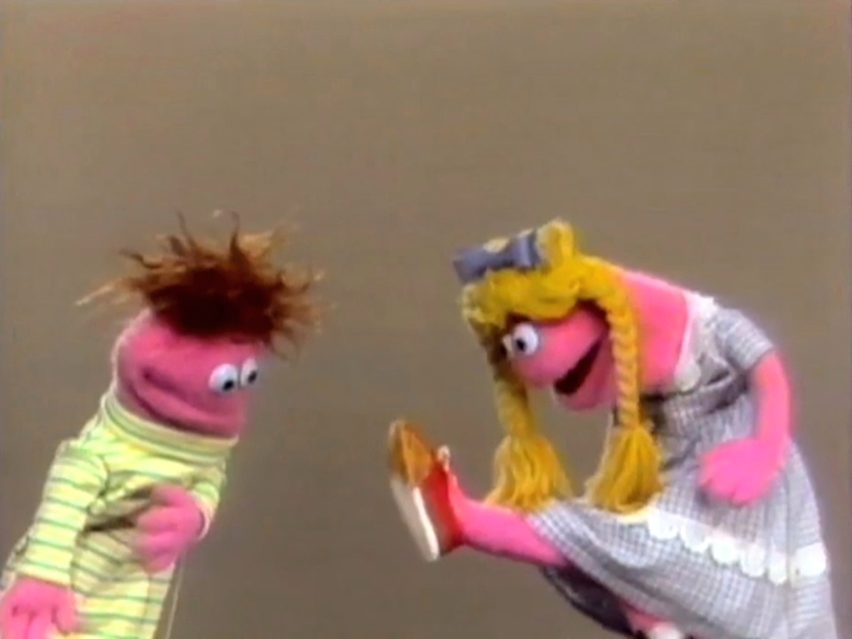 Muppets | Hunt for Happiness Part 1 β Helen Happy tells Harold Happy that she has mud on her sneaker. (First: Episode 0112) |