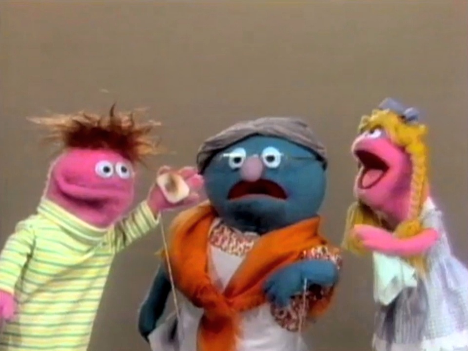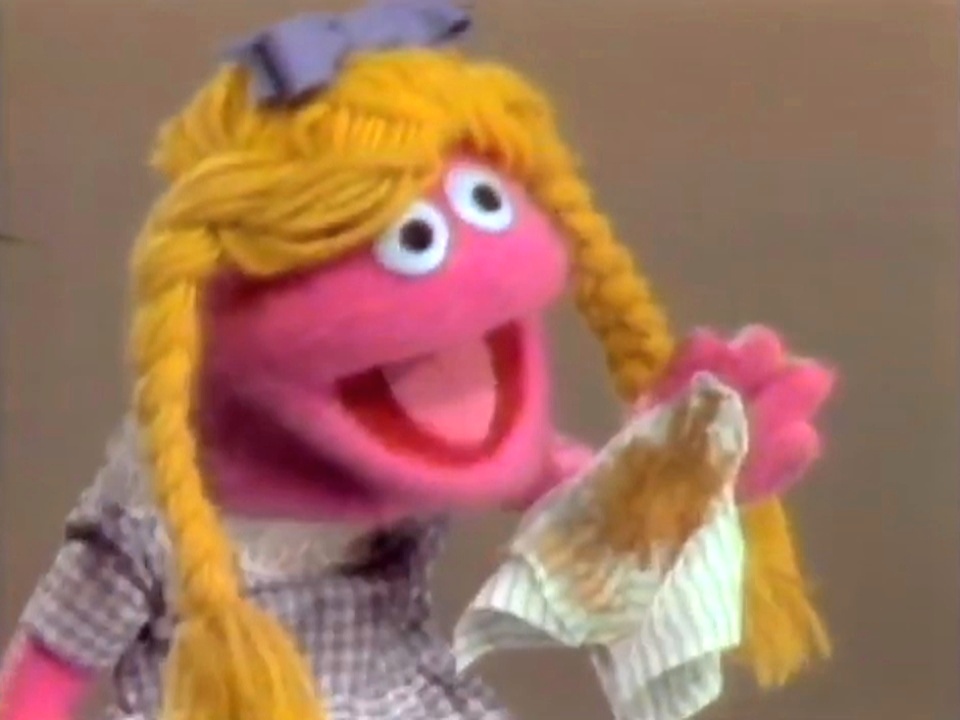 Muppets | Hunt for Happiness Part 2 β Grandmother Happy suggests that Helen wipe the mud off her sneaker with a rag. (First: Episode 0112) |