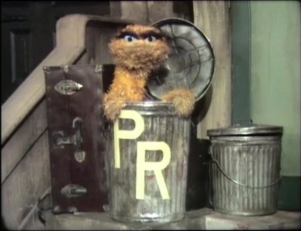 SCENE 1 | Oscar talks during the opening theme sequence, trying to direct the filmed children elsewhere; nobody seems to be paying attention to Oscar today. He announces that he's taking over the show while Gordon and Susan are at work. Oscar displays the letters P and R on his trash can, and points out the difference between them. He looks up and sees Alphabet Bates skywrite the letter R (First: Episode 0014). |