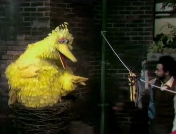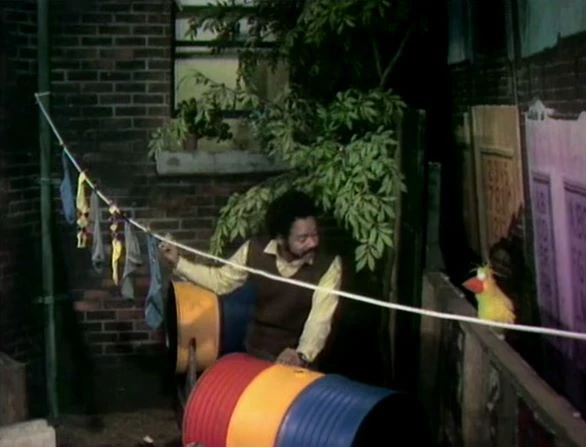 SCENE 5 | Gordon walks in on a sleeping Big Bird to show how to match socks on his clothesline. Little Bird is skeptical that Big Bird will understand, but they wake Big Bird up to give it a try. He successfully matches all three pairs, but continues to fall in and out of sleep as he does so. |