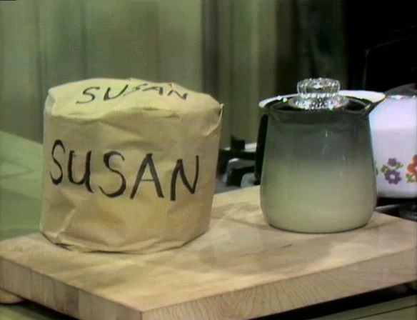 SCENE 1 | Gordon returns from work and is about to go to the record shop to buy the records Susan has been asking for. He notices a package on the kitchen counter for Susan, but Gordon is curious about what is inside. He thinks it could be the groceries, but just then Mr. Hooper brings the groceries that Susan ordered. |
