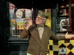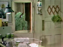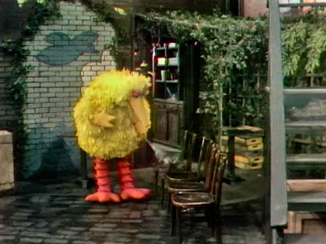 SCENE 2 | Big Bird finishes dusting the four chairs in the yard, which Mr. Hooper told him to do. Proud that he is being helpful, he goes to find Mr. Hooper to show him the chairs. Meanwhile, Mr. Hooper comes back and sees the chairs. He counts four clean chairs, and thinks Big Bird did a marvelous job. He takes a chair out in front of the store so he can get some sun. Meanwhile, Big Bird comes back to find only three chairs. He thinks that the fourth has run away, and goes to tell Mr. Hooper. Meanwhile, the sun has gone behind the clouds, so Mr. Hooper puts the chair back. Big Bird finds Mr. Hooper, but now there are four chairs. He thinks the chair ran away and ran back. As they go into the store, Mr. Hooper explains that chairs can't run away. |