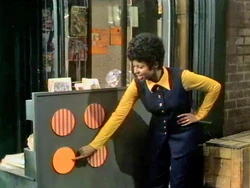 SCENE 5 | Susan sings "One of These Things" using patterns on circles on the newsstand outside Hooper's Store. |
