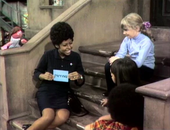 SCENE 1 | Susan comes home from work and reports that she had just visited Mrs. Rodriguez, whose son had twisted his leg. She teaches some children and a Muppet girl (Fran Brill) how to spell and pronounce the word "pierna," which means "leg." |