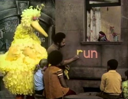 SCENE 4 | Gordon presents the "UN" word family to some kids and the Muppet girl; one kid compares it to the Uncola. They encounter Big Bird running, and Gordon points out to him and the kids that "run," "sun," and "fun " are all members of the "UN" word family. |