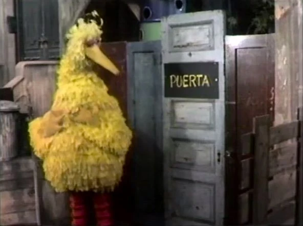 | Big Bird learns the Spanish word for "door" | |||||||||