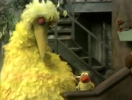 - Starting with this episode, Big Bird's home is given more decoration, including an address label (123 1/2), a lamp, a couple of smaller birdhouses, and a mailbox. A drawing of Big Bird and the original orange Oscar can also be seen.