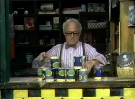 SCENE 4 | Gordon, Susan, and Mr. Hooper pose their own "what happens next" questions. Gordon holds an ice cube, Susan cooks some toast, and Mr. Hooper stacks cans of peas. |