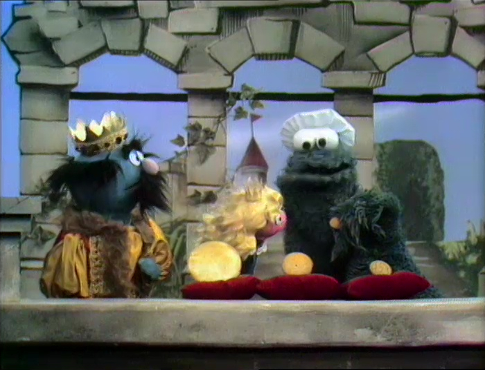 Muppets / Cast | Bob reads the story of "The Princess and the Cookie." In the story, a king is looking for someone to marry his daughter, the small princess Eunice. He is having trouble, because all the princes in the kingdom keep bringing her cookies that are too big for her. Finally, the baker (Cookie Monster) enters with the smallest cookie in the kingdom, which the princess immediately wants. The baker is disinterested in marrying the princess, until the prince offers him the other three cookies that the princes brought. And they lived happily ever after. (First: Episode 0152) |
