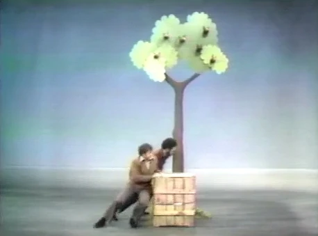 Cast | Bob and Gordon cooperate to get apples from a tree. |